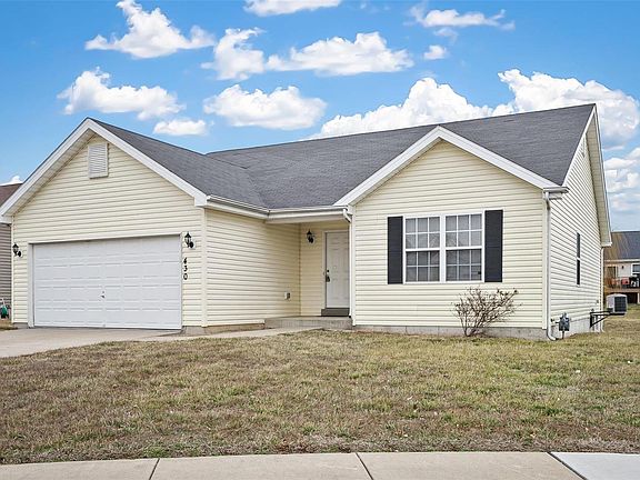 Are you looking for a charming ranch within the Wentzville School District and easy access to HWY? 430 Marble Fields is awaiting its next homeowner.  House sits on a spacious lot with a level backyard.  When you enter the home, you will see almost every room as it is an open floor plan with vaulted ceilings.  Split bedroom plan allows privacy for master and secondary bedrooms. Newer carpet and some fresh paint. Eat in kitchen with breakfast bar.  The basement is a blank canvas and ready for you to make it your own. You don't want to miss this one! Schedule your private showing today.