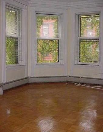 Back Bay... Marlborough St... Entire Upper Floor Two Bedroom features spacious open living/dining area with bay window, front-facing views, exposed brick and fireplace. Fully-applianced galley kitchen. Great layout for roommates. Tiled bath. Heat & hot water included. Laundry. One Month Fee. Cats ok.