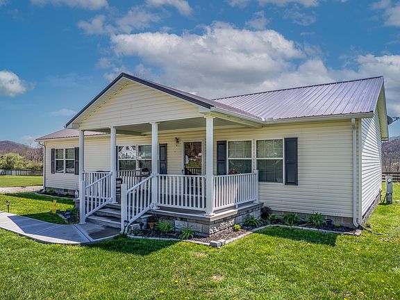 This thoughtfully designed manufactured home offers a spacious split-bedroom floor plan, with the primary bedroom located on one side of the home featuring its own private en-suite bathroom and large closet. On the opposite side, two additional bedrooms, each with large closets, share a full bathroom. The open-concept main living area creates a seamless flow between the living room, dining area, and kitchen, making the space functional and great for entertaining. The kitchen includes tons of cabinetry, a large island/breakfast bar, and a large walk-in pantry, with the utility room just off the kitchen for added convenience. A sliding glass door off the dining area leads to a newly built oversized back deck, offering plenty of space to enjoy your days home. Additional updates include new landscaping and a one-car metal garage that can also serve as a workshop. The home also features a large covered front porch, a metal roof, and sits on a generous lot with a quaint rural setting. This home is just 10 minutes from downtown Morehead, where you'll find local shopping, big box stores, and UK/St. Claire Hospital. It is also less than 20 minutes from Cave Run Lake, making it a great. location for both convenience and outdoor recreation. This home is a must see and move in ready!