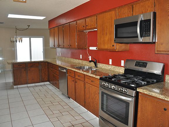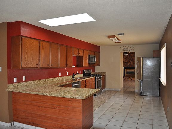 Gleaming ceramic tile floors throughout this attractive rare find four bedroom ranch style featuring fireplace in living area, granite counter tops in kitchen including stainless steel appliances, family and dining with separate outside entrances. Master suite with tiled shower, large vanity, shower and sliding door opening to covered patio. Two storage buildings and pink doll house in spacious back yard. Without a doubt very impressive at an affordable price!