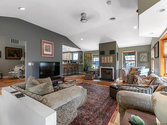 This meticulously maintained Contemporary home located in the MUCH desired area of North Greenbush. This home offers Acai Rubbed Hard wood flrs, LR with VT casting wood FP, Gourmet eat in kitchen w SS appliances, Master suite. 1st Floor offers a beautiful family room, bedroom, bath & laundry that leads to a private & beautifully maintained patio with garden lights, Sedona grill, fire pit, heated detached garage. In-law suite has its own separate entrance ( currently leased ), 1 bed 1 bath.So many update, Full list located in Documents. This home is centrally located to the Tech park, Regeneron, 10 minutes to Amazon and 15 minutes to nano tech. Easy HW access. Close to all recreation, dining and shopping. MUST SEE!! Excellent Condition