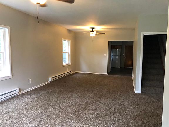 Large apartment/townhome available for rent. Completely renovated and includes new kitchen appliances, freshly painted, new carpet and laminate flooring. 1st floor - living, dining, kitchen, 1/2 bath 2nd floor - 3 bedroom, 1 bath Full basement with laundry hookup Included in rent is sewer/water, garbage, lawn maintenance and snow removal.