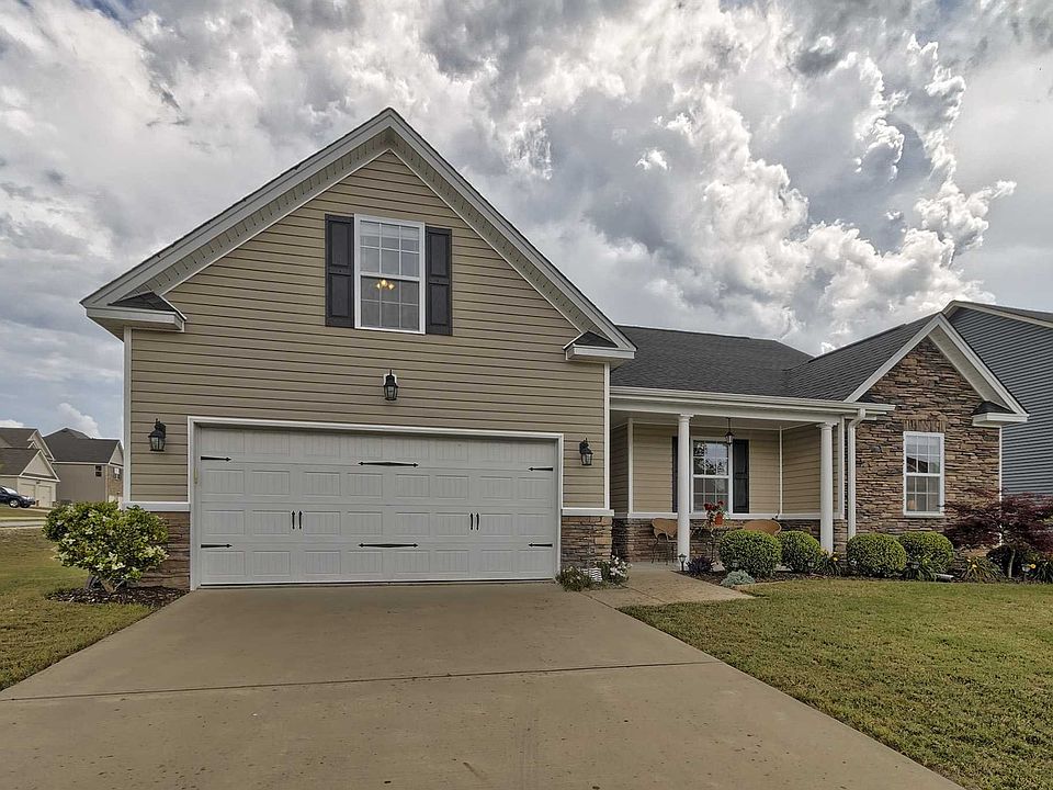Looking for most of your living area on the main floor? Check out this 1.5 level 4 bedroom on a corner lot w/great upgrades - stone accent front elevation, beautiful entrance w/hardwoods & wainscoting; open concept vaulted family room/kitchen w/ eat-in & fantastic fixtures/stained cabinets; master on main w/huge walk-in closet and on-suite w/double vanities; 2 additional bedrooms on main on the opposite side of the home; 4th bedroom w/closet/FROG on second level. Well manicured yard w/patio. This home is well taken care of and move-in ready! Lexington One Schools.