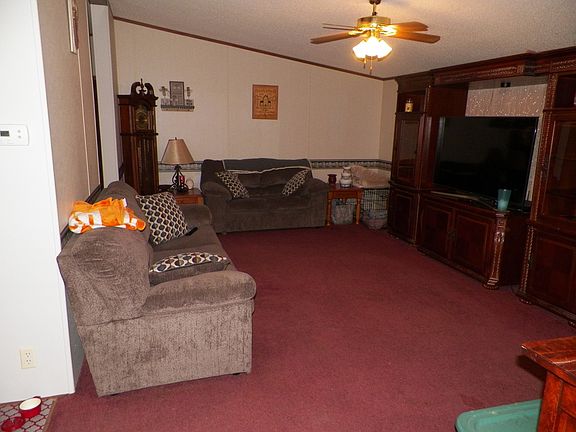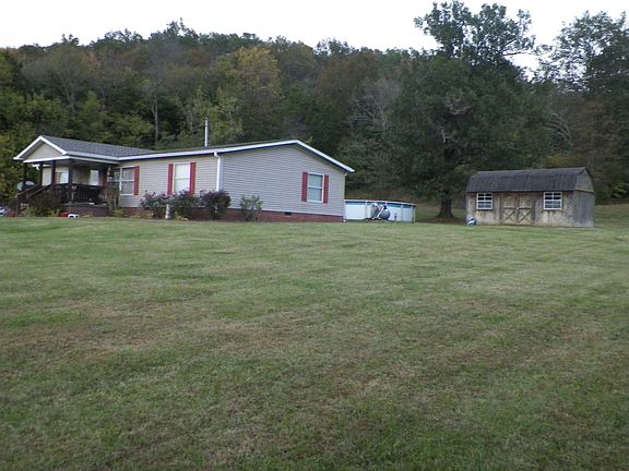 Beautiful, private 5.01 acres! Manufactured home on permanent foundation. 1,386 sq ft-Open floor plan. 3 bedrooms with walk-in closets. 2 baths. Covered front porch. New roof and gutters August 2020. 30ft above ground pool w/deck. 10x20 out building. 1 year old kitchen appliances and washer and dryer to STAY with home!