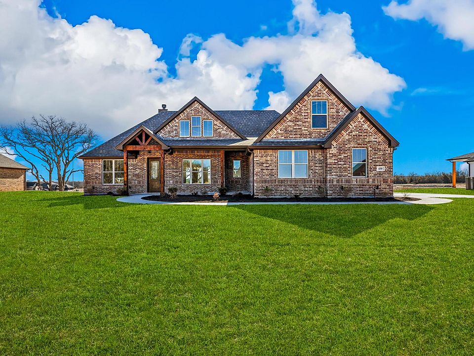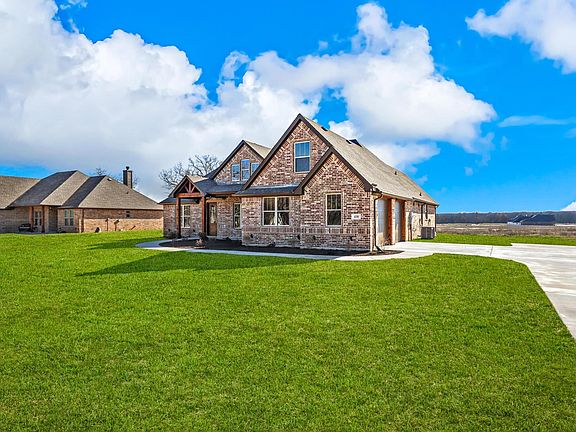 Brand new home in the new subdivision of Windmill Ridge Estates on a corner lot. Granite countertops in kitchen, custom built stained cabinets with custom trim work. Open floor concept with kitchen island and hanging pendant lights, crown molding in living, kitchen and master bedroom. Wood burning fireplace with bookcase. Enormous pantry with lots of storage space! Large walk-in master shower with tile and double bench, garden tub and huge walk-in master closet with island which goes into the laundry room. Mud bench right off garage along with half bath. High speed internet available. Established trees in the backyard, plus sod, bushes and sprinkler system. Great school district Paradise ISD! Located 30 minutes from Alliance Fort Worth. Come enjoy the country living in this quiet small community! Yard Service is included in monthly rent. Renter pays water and electric
