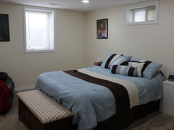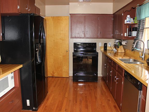 Ready to move in!! This great 5 bedroom, 2 bath home has nice living room with picture window and cozy wood fireplace. Hardwood floors throughout the kitchen and dining room. Custom butcher block countertops highlight the bright kitchen and includes all appliances. Two bedrooms have awesome custom built beds for the kids; one is a castle the other is a jungle complete with slides... owners will leave or remove, whichever buyers prefer. Third bedroom has beautiful hardwood floors. French doors just off the dining room features built-in blinds and leads to the open patio and wood deck that overlooks the large fenced yard. Auto motion lights brighten the stairwell to the finished basement which features an oversized family room with recessed lighting and cute play area under the stairs. There's a large storage and laundry room with sink, beautiful full bathroom with double sink granite vanity and extra deep soaker tub with beautiful tile surround. Two more bedrooms with walk-in closets complete the basement. You cant go wrong with the EXTRAS in the home; gas forced air, central air conditioning, full auto sprinkler system, attached garage all on a quiet dead-end road! Hurry! Call to take a look!!