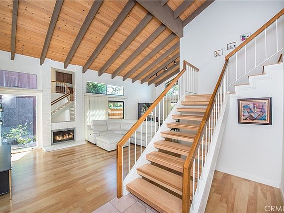 Welcome to your new oasis in Fullerton! Located in the exclusive, 24 hour guard-gated community of Fairway Village, this exquisite 4-bedroom, 3-bathroom home offers 2,373 sq ft of luxurious living space. Designed with both elegance and comfort in mind, this property is perfect for those seeking privacy and high-end amenities. Enjoy the peace and security of living in a tranquil and expertly maintained community loaded with HOA benefits and open space. The chef's kitchen has custom cabinets, granite countertops, and modern stainless steel appliances. Also on the first floor is a bedroom and full bathroom. The designer interior has light wood floors throughout, and the vaulted ceilings are enhanced by wood beams to create a warm and inviting atmosphere. All the bathrooms are upgraded with custom high-quality finishes. Retreat to the master suite highlighted by a floor to ceiling walk-in shower in designer dark stone. Also included is a sizable walk-in closet with cedar finishes. Enjoy access to HOA pools, tennis courts, spas, and a clubhouse. In the backyard, the entertaining area includes a cobblestone paver patio, lush tropical landscaping, and a custom barbecue island making this home the perfect setting to truly enjoy all the Southern California lifestyle has to offer. This private estate home offers exceptional privacy, showcased by an open greenbelt beyond the backyard. No neighbors to the rear or to the west. Don't miss the chance to own this exquisite home in one of the most sought-after Fullerton communities behind the gates of Fairway Village.