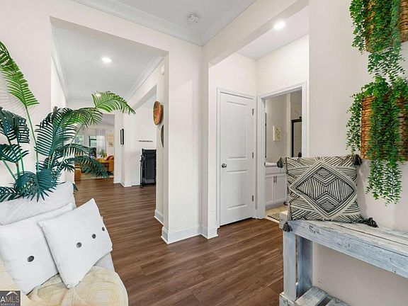 Washer, Dryer & Refrigerator Included! Welcome to this beautifully maintained 2-bedroom + bonus room, 2-bath home located in the highly sought-after South Fayette County-just minutes from shopping, dining, and all your daily needs. Step inside to discover a spacious open-concept layout designed for both comfort and functionality. The chef's kitchen is a standout, featuring a wall-mounted convection oven, 5-burner gas cooktop, large center island, and a bright breakfast area that flows effortlessly into the main living space. Recessed lighting and custom built-in bookcases add warmth and charm to the inviting living room. A flexible front bonus room offers endless possibilities-perfect as a formal dining room, home office, or cozy sitting area. The owner's suite serves as a peaceful retreat with a spa-inspired ensuite bath showcasing dual vanities, a tiled walk-in shower, and a spacious walk-in closet. The secondary bedroom is generously sized and serviced by an upgraded full bath with a beautifully tiled shower. You'll love the luxury vinyl plank flooring throughout the main living areas, paired with plush carpeting in the bedrooms for added comfort. Step outside to enjoy the professionally landscaped front and back yards, ideal for relaxing or entertaining. Start your day or unwind in the evening on the screened-in porch, surrounded by tranquil greenery. Schedule your private showing today!