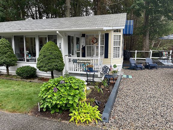 SUMMER IS ALMOST HERE!! Opening Day is May 1st. Unit #149 will be ready for viewings on Saturday, May 3rd. Please call (978) 660-7307 or email j.donnelly4@aol.com for more information. This unit is a nicely appointed park model home on a rare corner lot located at Meadowledge RV Resort www.meadowledge.com in Wells, ME. This spacious & sunny corner lot is fully landscaped and perfect for friends, family and guests. It is equipped with a large patio deck that includes wrought iron table, 4 chairs and umbrella. There’s an outdoor fire-pit which is perfect for nighttime entertainment. An 8’ x 10’ shed that is wired with outlets and overhead lighting, keeps your beach toys safe and dry. Shed is full of tools that are included. This lot easily accommodates 3 vehicles. The unit features a primary bedroom, as well as another queen size bed on the enclosed 3-season porch for your guests. A large leather sofa and leather recliner chair makes for a comfortable place to hang out in front of the cozy fireplace and watch TV. The large central AC unit keeps the main living space and porch cool on hot summer days. Turn key unit – fully furnished (inside and out) ...see below for more extras! • 2006 Breckenridge (1240R) – unit runs parallel to road for better views • Prized corner-wooded lot • Professionally landscaped (Jo-Ann’s Gardens, Inc.) w/Tree-lined border • Extra-large Central Air-conditioner (including AC & Heat ducts on porch) • 8’ x 10’ Free standing “wired” shed with work bench & shelving, and tools • Large pressure treated deck • Custom Sunbrella Awning over front window • Cast Aluminum Lamp Post Other features: • New - 20 Gal. Hot Water tank professionally installed May 2024 • Large Samsung Refrigerator (purchased Jul 2017) • Comfort height toilet (installed Aug 2022) • Allen + Roth Heritage Electric Fireplace • 84” Leather sofa • Leather recliner chair • Kitchen cart w/marble top • 50” mounted flat-screen TV • Wood-look laminate flooring throughout main unit • Armstrong Boathouse Pine laminate flooring on enclosed porch • 2009 Yamaha Zuma Scooter with 850 mi. (needs tune-up) • Easy bike ride to ocean (1 mi. from park entrance) Meadowledge Resort info: www.meadowledge.com