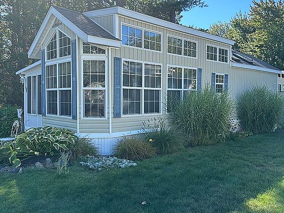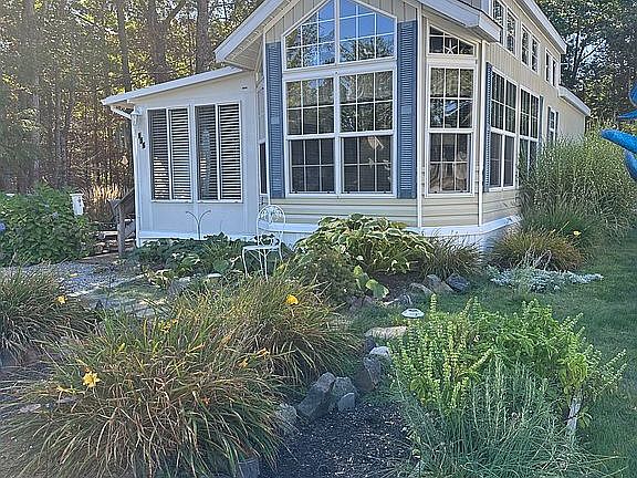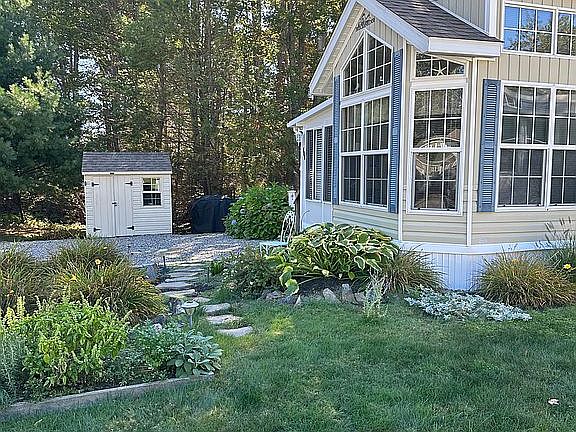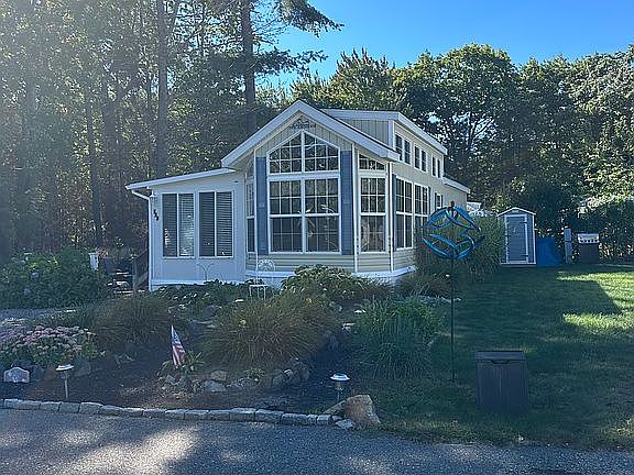 This "Oasis" Park Home is located at Meadowledge RV Park in Wells, ME. This well maintained end unit is comfortably located at one end of this dead end street. This rare find unit has you enjoying your morning coffee on the private brick patio each morning. Enjoy your favorite beverage with the sounds of the birds and peacefulness and beauty of your private perennial garden. No mowing of the lawn here, just beauty of nature and the privacy you have been looking for. This well kept and updated park home has been the pride of family and the enjoyment of friends over the years. Your guests will enjoy their own bedroom on the three season porch along with the space of this full length porch. The current owners have updated this unit with laminate flooring throughout, a new roof with their 2 updated and new skylights, along with the new roof included for their shed. When they had this park home built some of the extras included a desk, upgraded air conditioner with extra vents and electrical outlets on the porch, extra electrical outlets outside on the porch, extra water spicket off the park home, washer hook up in the pantry closet, upgraded fixtures, stainless steel sink and faucets, recent living-room upgrade with fireplace, new shiplap wall, waiting for your large TV to be mounted. Your 3 season porch also includes 2 ceiling fans with updated levelor blinds and ikea fixtures for those room darkening curtains vs. blinds. Why block the view. This is a must see unit. Come decorate it to your liking while enjoying the peacefulness of this spot. This lovely spot won't last.