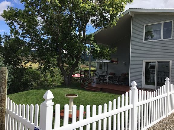 This is an immaculate well cared for home that has been kept updated through the years. Main floor has a spacious open kitchen and dining area. Gas fireplace in the living room, large windows with fantastic views in every direction, half bath right off the back entry. Master bedroom, with en-suite is on the upper level along with a second bedroom, walkout basement has a freestanding propane stove, family room, bedroom, bathroom and a non conforming room. 2 car garage is attached with a breezeway. Warm spring Creek runs along the road at the back of the property and there is a dock for easy access to the creek for floating. The outside is just as immaculate as the inside, with a beautifully landscaped yard; with flowers, retaining walls, patios, a wrap around deck and a covered area for outdoor entertaining or relaxing. No covenants on this property.