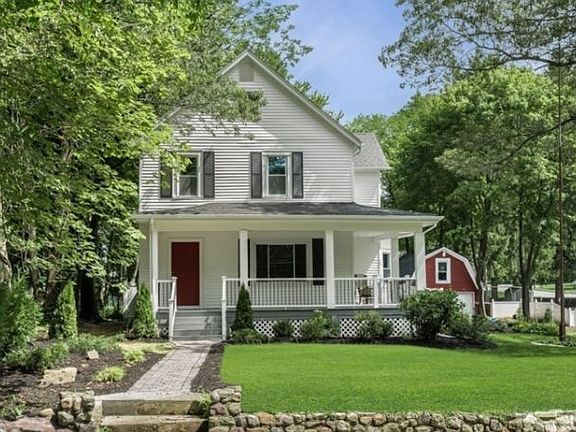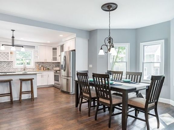 FULLY Renovated in 2019! Move right into this gorgeous 4 bed, 3 full bath home with open floorplan and modern contemporary feel. This home features 2019 Roof, Gutters, Siding and gorgeous wrap-around porch, a detached 2-car garage and a huge fenced-in backyard with patio! Open floor plan with wide-plank flooring throughout. Stunning Kitchen featuring Granite Countertops, Stainless appliances, a built-in wine rack, and center island with seating. 1st floor has a bedroom office and laundry room. Unfinished basement for poss. playroom, storage, etc. Wood floors through all bedrooms. Master bedroom features a walk-in closet and an en-suite bath with a double vanity. New windows and a 2-zone HVAC system.
