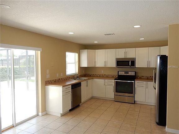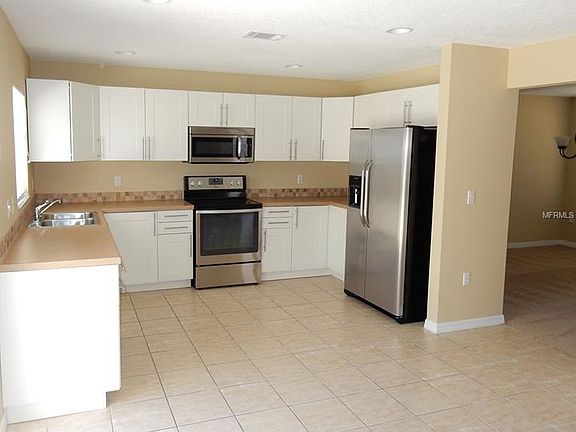 NEW NEW NEW. Got it!!! Looking for a new 5 bed 3 bath home, but do not want to pay the NEW price? This home has just completed a major refurbishment. New AC system. New stainless steel kitchen appliances. New kitchen cabinets. New tile and cabinets in all bathrooms. New carpet throughout. New paint inside and out, New hot water tank. The massive master bedroom has a very large master bathroom, walk in shower, twin vanities and there are sliding doors to a balcony. There is a second master suite on the ground floor, very useful for the in-laws or teenage family members. The Kitchen, Breakfast area and Living Room featured tiled floors. The HOA includes the weekly pool care, landscaping, and cable TV. Minutes to shops and restaurants at Champions Gate and 15 minutes to Disney, this home would be a lovely family home, or a great vacation home.