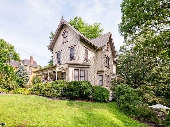 Beautiful Victorian in the highly sought after Park Section of Boonton. Backs up to park land with hiking trails and trout stocked river. .5 acres of park-like property. Patio and fire pit area. Freshly painted boasting 10' ceilings, 10" crown moldings, cherry trim, 2 decorative marble fireplaces, gleaming just refinished pine floors, large updated eat in kitchen with Viking Stove, sub zero fridge, tin ceiling with door to side porch and patio. First floor full bath. Second floor has laundry and 4 bedrooms. Walk up 3rd floor boasting a HUGE rec-room with built in shelves in sitting area with big windows looking out back, billiard section and media area, cathedral ceilings and exposed brick. Bonus room in basement. Grounds are a park setting with rolling hills, beautiful landscaping. Electric dog fence.