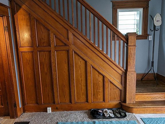 Great investment property! Single-family rental home with current lease of $1099 monthly with expiration of 07/31/2024. Roof was replaced about 6 years ago. New windows just installed in July 2023. Kitchen and bath both fully remodeled in April 2022. Fridge and stove purchased new in April 2022. This home boasts the original beautiful hard wood details and beveled glass windows. Off street parking in rear off the alley. Washer and dryer provided in the unfinished basement.