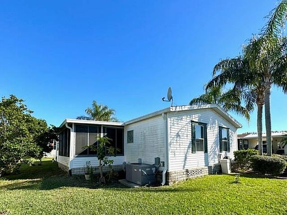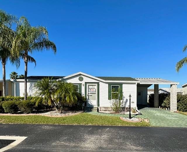 Come and live in Windmill Village, one of Central Florida's newest elite retirement communities. With numerous on-site amenities, you can retire in style at an affordable price. With several golf courses within a few miles of this community, enjoy a golf game at your leisure. Amenities onsite include lighted tennis/pickleball courts, RV storage, library, picnic area, clubhouse, fitness center, lots of planned activities and of course, a heated swimming pool and hot tub. You can be as active as you would like or just chill. Downtown Davenport offers residents the opportunity to explore a plethora of attractions: explore museums, botanical gardens, and fine dining. Well-loved 2 bedroom/2 bath home in elite Windmill Village. This 2004 home has everything you need to live a great retirement. The front lawn is well-landscaped with easy maintenance choices, a level carport offers two or more cars to park comfortably. The carport is painted with a palm-tree motif. Enter into a large Florida room with plenty of extra space to enjoy the outdoors. There is concrete floor with speckled paint and tempered glass sliding windows and screens. Galley style kitchen offers lots of cabinets and there is an inside washer & dryer off the kitchen plus a compact desk area. The common area features an open floor plan with dining room and living room and has beautiful vinyl plank flooring. The master is off the living room area and has an attached private bath and walk-in closet. The second bedroom is also large and has a walk-in closet. Main bath has a walk-in shower and single sink plus dressing area. This home has all new waterproof vinyl plank flooring throughout. The central air and heat was replaced in 2018. It comes with furniture and all the appliances . Call today to make this your new home! Must be park approved.