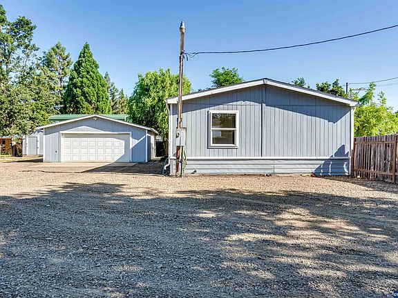 Open Sat 7/22, 10am to noon. Darling home on .3 acre lot, fully fenced. Detached 2 car oversized garage/shop building (24x30). Interior has been recently painted. Home has an open floor plan between the kitchen & living room. Vaulted ceilings. Primary bedroom has a bath w/ walk in shower that passes through to the laundry area. 2nd & 3rd bedroom are separate from the primary. Front porch and a covered back deck with an outdoor kitchen area. Lot has raised beds, 2 storage sheds and a fire pit.