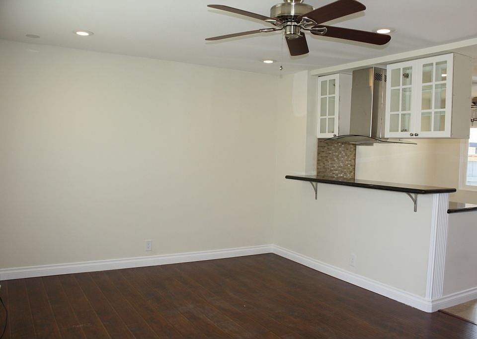 ? Two bedrooms featuring wood flooring, ceiling fans, mirrored closet doors, can lighting & scraped ceilings ? Bathroom features granite countertop with designer sink, tiled shower with glass door & tile flooring ? Kitchen includes granite countertops with full tile back splash, breakfast bar, stainless steel appliances & sink, designer stainless steel vent hood, glass door cabinets, ceiling fan, can lighting & tile flooring ? Private, fenced backyard with patio and grass area ? One car garage with washer/dryer hookups and extra storage ? Dual pane windows with 2” blinds & insulated ceilings ? Walking distance to the Orange Circle & Chapman University ? Easy freeway access to 22/57/5/55 ? Gardener, trash and water included