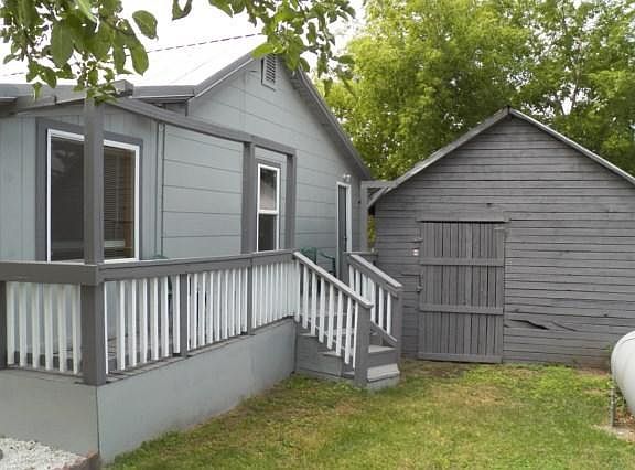 Incredible Buy! Completely remodeled w/ new wiring, new plumbing, new vinyl windows, New floor coverings. 1 Bdrm 3/4 Bath home on large fenced yard w/mature fruit trees, grape vines, berry plants and garden area. Outdoor firepit.This cozy home has a covered porch with a ramp Plus an open deck off of the kitchen area.There is a free standing propane fireplace that can be mounted on the wall. The living room flows into an area that would be a great office space. Home & shop have Metal roofs. Outbuildings include a workshop plus two metal storage bldgs. This is truly AFFORDABLE HOUSING!