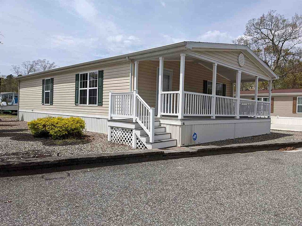 Fantastic Like New unit located on quiet dead end street in wonderful over 55 community known as Pine Hill. Unit has hardwood floors in the nice size living room and dining area. Open kitchen with tons of light oak cabinets, gas range with over-sized microwave built in above it and a almost new fridge, tons of counter spaces and receptacles. Large laundry room with storage cabinet and side entrance. Venture down the hall to the full hall bath and decent size 2nd bedroom with walk in closet. Master bedroom at rear of unit with lots of natural lot and another walk in closet. Master bath with great walk in shower and lots of room. This unit has a full front porch perfect for your patio set, rockers and grill. Large storage shed on manicured maintenance free lot. Shared concrete driveway or plenty of space out front for parking. Park doesn't allow any pets and approval is required. Lot rent of $495 monthly includes water, sewer and dumpsters for trash.