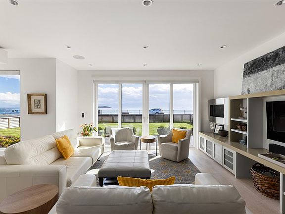 This award-winning modern home by SEBA Design exemplifies coastal contemporary living along Victoria’s iconic waterfront. With over 3,000 sq. ft. of refined design, it showcases stunning ocean and Olympic Mountain views through expansive windows that fill the interiors with natural light. The main floor blends open-concept living with a gourmet kitchen featuring Wolf and Sub-Zero appliances, an elegant dining area, and a bright family room that opens to the oceanfront patio. A main-floor office and a versatile bedroom ideal for guests or family enhance flexibility, while upstairs, the primary retreat enjoys panoramic views, a luxurious spa-inspired ensuite, and private balcony. Two additional bedrooms, each with their own ensuite, plus a laundry room complete the upper level. The home also includes an elevator, double garage, and detached studio/media room. Steps from Willows Beach and Oak Bay Avenue, this residence delivers the best of oceanfront living with sophisticated modern style