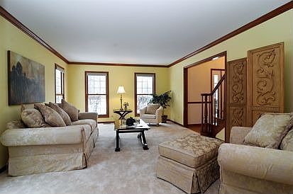 Pottery Barn Perfect Cape Cod on tree-lined cul-de-sac lot. Two-story Foyer with hardwood floor, staircase with white balusters and oak handrails, Hudson Valley chandelier and curio ledge. Floor-to-ceiling windows in Living Room with hardwood floor and crown molding. Formal Dining Room has two-tier candelabra chandelier, crown molding and hardwood floor. Gourmet Kitchen boasts white raised panel cabinets with brushed nickel hardware, island with seating, granite countertops, top-of-the-line appliances, full wall of pantry towers, white porcelain sink with new brushed nickel faucet and recessed lighting. Huge eating area with Restoration Hardware chandelier and French door to backyard. New Pella Proline patio door in Family Room with white brick fireplace with fluted wood surround and high-profile mantel. New slate tile floor in first floor Laundry Room with white cabinets, pantry closet and service door to covered porch. First floor Study with bay window, crown molding, recessed lighting and hardwood floor. Double door entry to volume Master Suite with sitting room and ceiling fan with lights. Freshly updated volume Master Bath has stone finish horizontal tile floor, double marble vanity with white cabinetry, two full-wall mirrors, new chrome light fixture, white whirlpool tub with mosaic tile tub deck, shower with clear glass doors and mosaic tile bench. Finished Lower Level has natural faux wood plank floor, cedar closet, acoustic tile ceiling, workroom and uber storage. Special features include zoned heating, new Bryant air conditioner, new sump pump, refinished hardwood floors, freshly painted, all lighting updated and new Pella ProLine windows. Beautiful backyard with brick patio and custom deck. Close to train, school and village!
