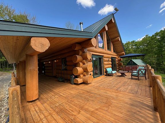 THE LODGE Newly constructed and spectacularly private off-grid contemporary style log home loaded with features. Custom kitchen with "tap-maple" cabinets, granite countertops, and stainless steel appliances. Vaulted ceilings offer a dramatic open living and dining area, cozy lower level recreation room and private guest rooms on each floor. Acres of land to roam. 20 @ 385 kw solar panels, 7 @ 5 kw lithium batteries, 15 kw propane fired Generac generator, 15 K-LV Sol Arc inverter/controller. On demand heat and hot water heater, 1,000 gallon buried propane tank. Furniture is negotiable. Also included is a delightful one bedroom stone artist/writers cabin for guests, caretaker or rental income. Shaw Road is a Class 4 public road but with a private road maintenance agreement. Some maps do not reflect 5 acre parcel of land sold on south side of Shaw Rd or 10 acre parcel of land sold on north side of Shaw Rd. Property includes an old stone camp needing repairs and sold in "as is" condition.