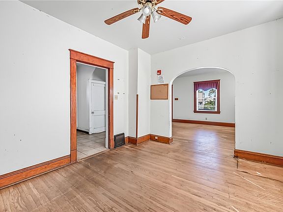 Loads of potential in this 3 bedroom 2 bath Sharon home. In addition to the living room, the first floor offers a spacious kitchen, dining room with large pantry space and a bath with shower. The living room and dining room hs hardwood floors. The second floor has 3 bedrooms and a full bath. There is a fire escape from the second floor. The walk up attic could be finished to add extra living space.