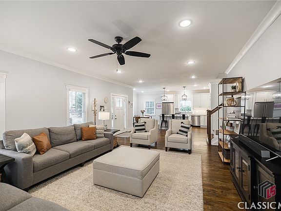 This beautiful newer construction cottage with a timeless style is located right in the middle of the Normaltown neighborhood. 430 Sunset Dr has a large rocking chair porch and plenty of windows to flood the home with natural light. The entire home features hardwood floors, recessed lighting, and a spacious and practical floor plan. On the main level in the front of the house, you will find a combined living room, kitchen, and dining area. The kitchen features a gas range, quartz countertops, semi-custom cabinets, a step-in pantry, and a tile backsplash. As you move towards the back of the main level the home features a guest half bath, laundry closet, giant primary suite, and a flex room with windows all around. This room would be great as a home office, den, or playroom. Upstairs are 3 additional bedrooms, 2 full baths, and a generous sitting area (play space, study area, or second TV area). The generous and deep lot allows plenty of room to entertain on the patio and beyond. Large hardwoods provide great summer shade. This location is an easy walk to Bishop Park, UGA Med School Campus, and Normaltown dining. Close to both hospitals and the UGA main campus too.