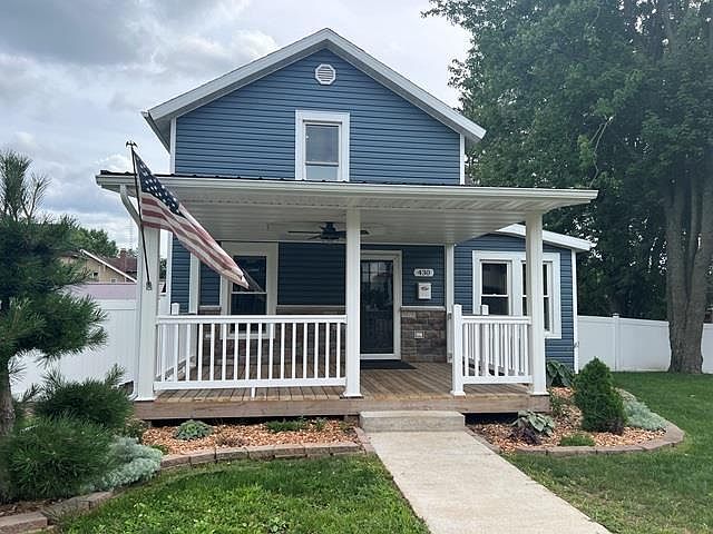 Beautifully remodeled 2 bedroom, 2 bath home w/fenced backyard situated in the heart of Reedsburg. Relax and enjoy your morning coffee on the covered front porch. Main floor features living & dining rooms w/wood flooring, kitchen with walk-in pantry & maple soft close cabinets and LARGE bathroom with tile flooring, 4'x6' walk-in shower, laundry & custom Knotty Alder Amish cabinets. Upstairs you will find a the primary bedroom w/custom cabinetry in the walk-in closet, 2nd bedroom & full bath with tiled tub surround. Entertain on the oversized covered backyard deck with ceiling fan and rope lighting. New furnace, on demand hot water heater & A/C in 2018. New plumbing & electrical. Bluetooth speakers in upstairs bath & front porch.