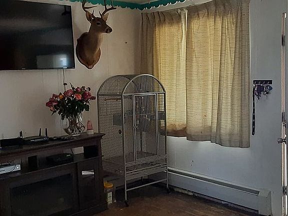Two beds upstairs both with walk in closets, front porch , front room , Dining room, kitchen pantry , side door access to kitchen, small bathroom, laundry room in back with back door to yard and detached garage, concrete basement with utilities in it hot water heater and base board furnace down there, metal roof on everything including garage , no leaks, aluminum siding got blown off a few years ago by a microburst so it could use some attention ,concrete foundation, hardwood floors in front two rooms everything else is plywood, Garage is one car detached with concrete floor and 110 power, Hot tub, Corner lot, two blocks away from parks , hospital schools and post office, 4 blocks from downtown. As Is. Can call me anytime for info