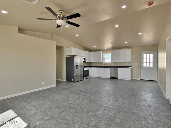 Welcome Home! Beautiful new site-built home located just 1.5mi from Hwy 89. Great starter home w/open floor plan, perfect for a growing family or those in need of extra space. Featuring beautiful white shaker cabinets, stainless steel appliances, & grey/black stamped concrete floors - both functional & stylish! Home is energy efficient w/upgraded insulation in the walls, roof plus garage, low-E Argon Pella windows, & Trane heat pump central heat/air. Oversized 2-car garage w/laundry hookups and plenty of storage for vehicles & outdoor equipment. Equipped w/cable internet, making it easy to stay connected. Amazing views of Granite/Mingus Mountains create, perfect backdrop for all your outdoor activities. Very peaceful and serene neighborhood is the ideal place to call home. Great opportunit