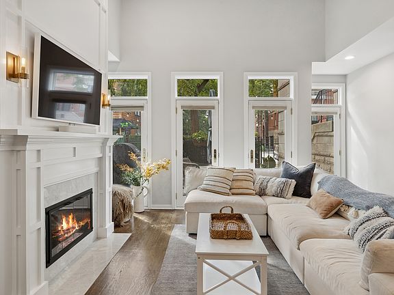 Freshly minted beautiful large two bedroom townhome at the Pointe!! It doesn't get much better than this. A prime east Lincoln Park location, attached garage parking, 14' ceilings and French doors leading to a private terrace flooded with southern light and hardwood floors throughout. Stunning new kitchen with elegant cabinetry and woodwork to the ceiling, large custom design island with storage and seating for six, wrapped in quartz with waterfall edge, and new ss appliances. The statement making fireplace is the centerpiece of the home with marble mantel and surround. Generous storage throughout the home includes two large walk-ins on main floor. The second floor features two good-sized bedrooms and spa-inspired baths with dual vanity, soaker tub and separate shower and new laundry. Walk to everything this summer including restaurants, beach, farmer's market, shopping on Armitage, Old Town, transit and Lincoln Park Zoo.