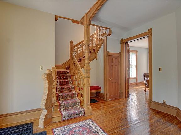 This is a beautiful Victorian style home. Wonderfully refurbished to preserve the original charm and character of the home. Pocket doors, French Doors, Claw Foot tub, hardwood flooring and much refinished original woodwork. There is a Walk-in Butlers pantry, enclosed rear porch, Covered side porch and a large back deck over looking a large fenced back yard. There is an oversized 3+ car garage with electrical hookups for tools. The 3 original fireplaces in the home are no longer used and should not be used and are a decorative feature only.