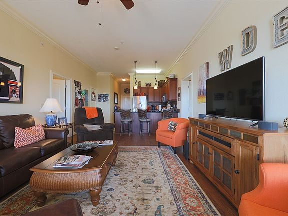 Welcome to the perfect game day condo unit with view of Jordan Hare Stadium! This gem is the largest unit in Tiger Suites and largest private balcony facing campus and stadium. This first class condo development has a wonderful meeting area for large gatherings or tailgating and other amenities such as fitness and on-call staff. Elevator access to the 4th floor brings you to this great unit with two master suites. A third full bath is available to other guests, separate from the two en suites. Kitchen open to living area which looks out Auburn University.