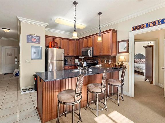 Don't miss out on this RARE, spacious 1 bedroom 2 full bath plan in Tiger Suites. Just blocks away from campus, Jordan-Hare, and Auburn Arena. This first class condo development has a fantastic meeting area for large gatherings, tailgating and other amenities such as: fitness room, on-call staff, and full time property manager on site. Condo association fees include water, basic cable & internet, trash, exercise room and pest control. Condo is being offered fully furnished (other than a few pieces of art, outdoor patio furniture, and living room TV). Seller to review all offers Monday 1-17-22.