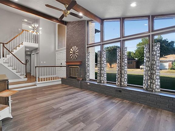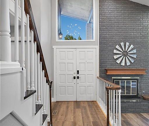 Stunning 4-bedroom home with 2 ½ bathrooms, finished basement and in-ground swimming pool on large corner lot. The spacious home has approx. 2,600 sq ft. The Primary Bedroom, the 2nd bedroom and 1 ½ bathrooms are downstairs. Two more bedrooms and 1 bathroom are upstairs. The entry into the house is eye-catching with a large modern light fixture, beautiful staircase and it opens to the grand Living Room. The Living Room features a 2-story cathedral ceiling, a beautiful fireplace that has a hearth the length of the room, and hearth to ceiling windows allowing good natural light in the room. The Living Room opens to the dining room and kitchen. All the appliances in the kitchen including the new dishwasher and the 2022 refrigerator will stay with the home. The kitchen also features lots of cabinets, large pantry, snack bar, new fixtures and hardware. Upstairs are 2 bedrooms with a Jack & Jill bathroom and a loft area overlooking the downstairs. All 3 bathrooms in the home have been completely remodeled. The basement has been finished w/ thin brick, electrical & carpet. The 2-car attached garage is a drive thru. Recent renovations include roof 2022, upstairs A/C 2022, swimming pool & hot tub, pool fence, back yard fence & new windows in bedrooms. All new throughout the house are the flooring, interior doors, trim, baseboards & paint. The washer, dryer, deep freeze and the $3500 pool cover will stay with the home. Home is very close to city park and elementary school. This is a lovely home ready to move in!
