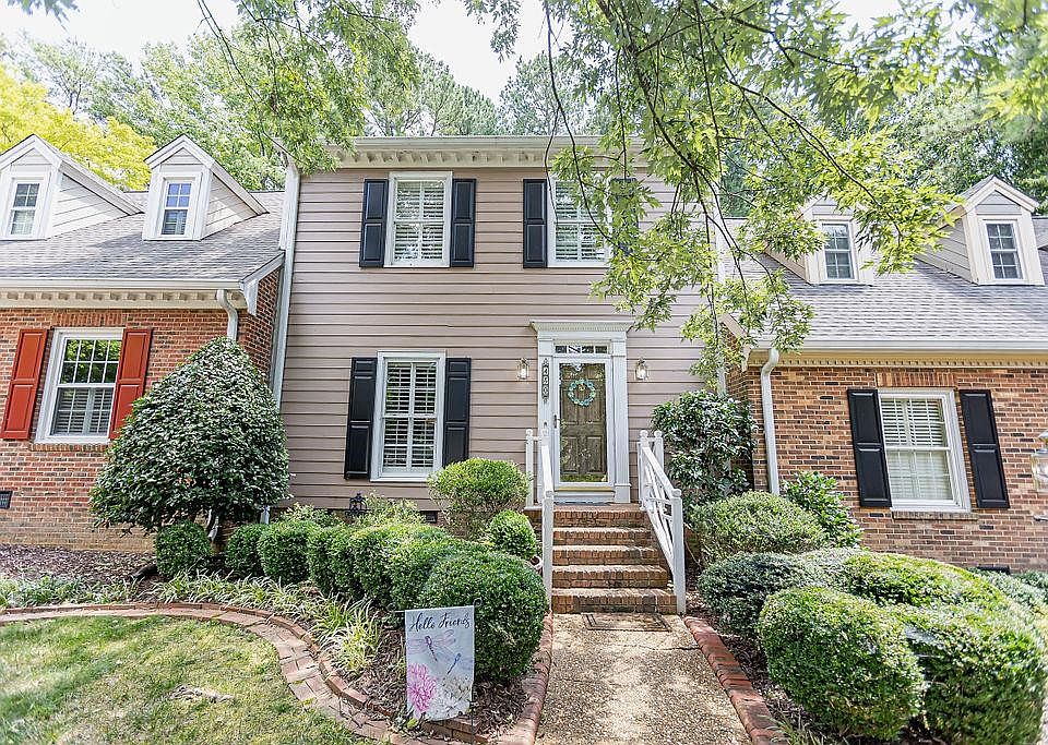 Lovely townhome in Weathersfield Place! Established neighborhood in a great location in North Raleigh near Ravenscroft School!! This 3 bedroom 2.5 bath has been updated! Nice updated kitchen with stainless steel appliances. Brick fireplace and built-in cabinets in the family room! Sit on the back deck and enjoy the birds and wildlife since it backs up to woods! Atmox controlled ventilation system has been installed in crawl space with vapor barrier. Refrigerator, washer & dryer convey. Walk-up attic is great for storage and could be finished!