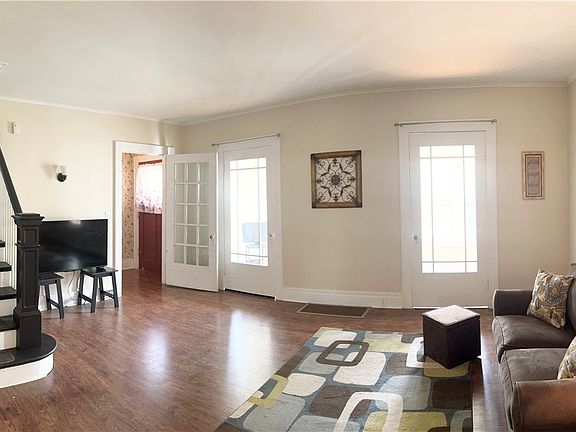 There are hardwoods under the existing flooring both on the first and second floor(check the closet floors). The claw foot tub and beautiful wood work add that old world charm. The enclosed porch off the living room adds additional living space.