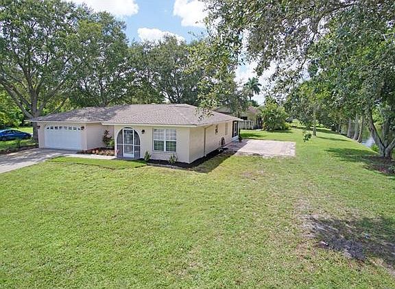 Canal Front Home in Desirable Location! This Home is located across the street from Golf Course! The property is lined with Mature Oak trees and sits on a Large Serene Canal which offers Beautiful Water Views and Fishing from your own Backyard! This Home has been Meticulously Maintained and features new Windows, Doors and a New 15.5 seer A/C system with a 10 year warranty! Interior of Home Offers a Remodeled Kitchen with Granite Countertops, Remodeled Baths, Tile Flooring Throughout Entire Home, Tile Flooring in Huge Screened Lanai and a 2 Car Garage with Automatic Opener! There is also an additional Large Paver Patio area in Backyard which is perfect for your Outdoor Furniture Set, Your Grill and Fire Pit!
