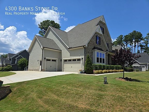 Large 3900 sqft, 4-bedroom, 4.5-bath home at 4300 Banks Stone Dr, Raleigh, NC, available for rent! This spacious residence features a fully fenced yard, perfect for pets or outdoor activities, and a screened porch for relaxing evenings. Enjoy modern amenities, including stainless steel appliances and hardwood floors. Located in the desirable Banks Pointe neighborhood, you're minutes from downtown Raleigh, I-40, and top shopping/dining at the new Costco and Harris Teeter. Ideal for families, this home offers community charm with easy access to schools and parks. Contact us today to schedule a tour! No worries about mowing the grass on these hot days. Yard maintenance is included in the rent. Washer/Dryer also included as well as some of the outdoor furniture. Bonus area is equipped with some gym equipment for your use. Pets are considered with monthly pet fee. Move in Costs: Rent: $4500, Deposit: $4500, Admin fee $100. Monthly Resident Maintenance/Benefits Package of $35. This includes $1000 in accidental damage assistance. Interested in submitting an application? *Photos and videos are provided at the agents discretion, for purposes of advertising only, and may not be an accurate depiction of the current appearance and/or condition of the rental property. Interested in submitting an application?
