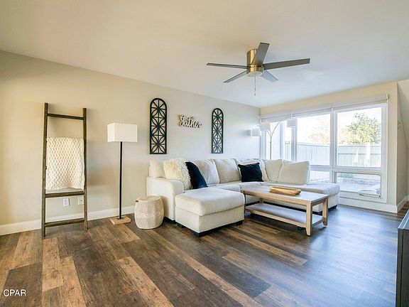 Step into your beach life with this recently updated condo, located in one of the most coveted gated communities on Panama City Beach. Situated mere moments away from marinas, local shopping havens, spectacular restaurants, and pristine beaches, this property offers an unparalleled blend of convenience and peaceful living. The kitchen is modernized with granite countertops, custom backsplash, additional cabinetry and newer stainless steel refrigerator. The bathrooms are updated with new vanities and the master boasts a fully tiled stand alone shower and beautiful shiplap accents. Enjoy the peace of mind that comes with a new HVAC system and a two year-old hot water heater, range and microwave. Embrace the natural beauty surrounding your home with brand-new sliding glass doors leading to the upstairs balcony, seamlessly blending indoor and outdoor spaces. Step onto your oversized pavered backyard patio, perfect for entertaining or simply unwinding amidst nature's beauty and beautiful sunset views. Come see this gorgeous condo today!