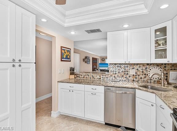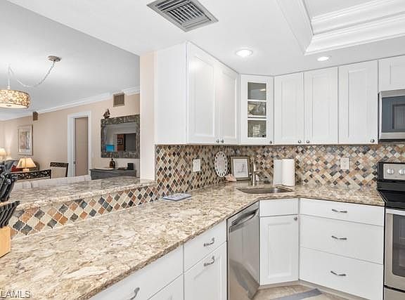 Park Shore awaits you, enjoy the private Beach Access, large community pool and 1st floor convenience. No steps! Updated and tastefully furnished. Large living room and dining area provide ample living space for entertaining. The kitchen has been remodeled with granite and stainless appliances. There is a eat at bar area as well as "coffee bar". A glassed in den with sliding doors serves as a den/office or just a wonderful relaxing reading space. Main bedroom is ensuite with bath and large windows and large closet. Top of the line furniture throughout the condo. Guest bedroom offers twin beds, another large closet and adjacent to guest bath and laundry room. Walk out the front door to the community pool, walk or ride your bike to stores, restaurants, drug stores and the Beach. Covered parking. Easy to show.