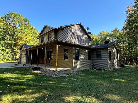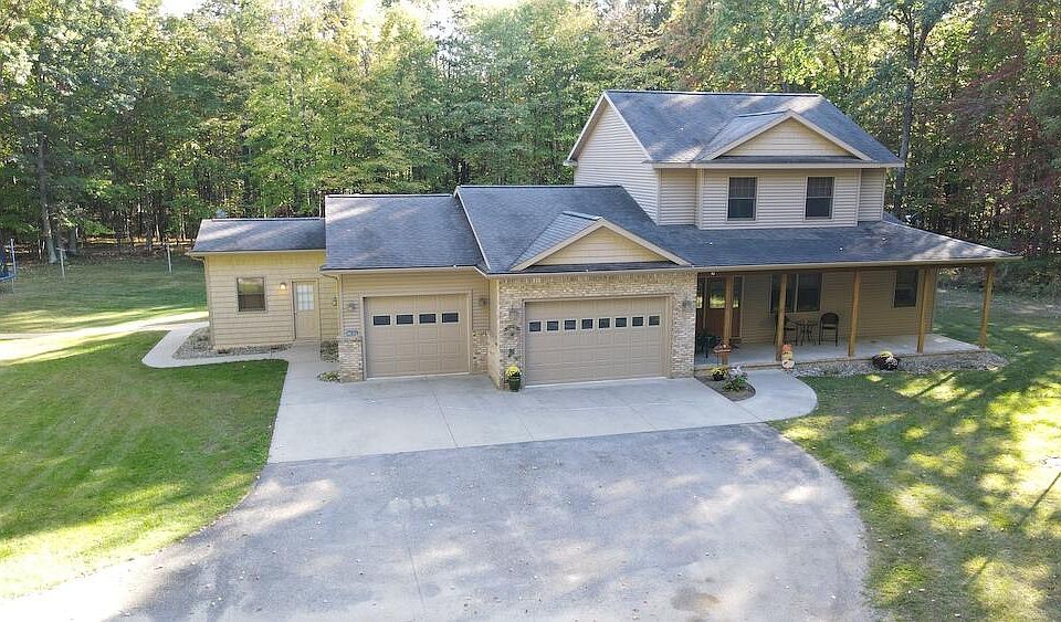 Welcome to 4300 Belair Ln. in beautiful Houghton Lake, Michigan. This sprawling country estate has it all. The long blacktop driveway leads you back to a beautiful 2,138 sq. ft., 4 bedroom, 3 bath, immaculate custom-built home. There is a very nice finished basement for even more living space. In addition to forced air heat and air conditioning, the home has a newer high-end wood Boiler system, a Central Boiler covered with a recently built wood shed stocked with firewood and ready for winter to help save on those not-so-fun gas bills. A 48'x38' stick-built fully insulated garage with an attached 14'x28' workshop provides storage for all of your tools, toys, and equipment and a great place to work on all of your projects. Driving up to the house, there is a very nice pond along the driveway that has its own dedicated well with a pump house to help keep it filled to the top, even in the driest, hottest months of the year. There is a huge backyard with a deck and covered porch that is perfect for entertaining and family gatherings. There is also a separate pole barn currently being used as a deluxe chicken coup, Adjacent to that is another 48x32 pole structure which had plans for a sawmill and could easily be finished for just that or for another building to provide even more storage. The pole barn/chicken coup also has 2 horse stalls connected, and it has water and electricity.