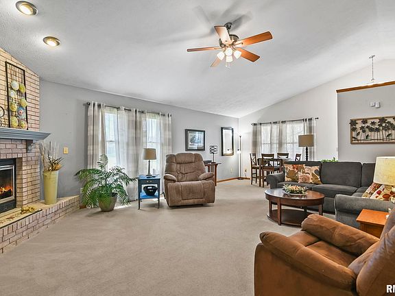 Remarkable 3 bed/2 bath ranch home in popular Franklin Park Estates. Pride of ownership! Large living room has vaulted ceilings, gas fireplace, and lots of natural light. Updated kitchen (2014) has large island, quartz countertops, 2 dishwashers, and pantry with roll-out drawers. Adorable breakfast nook could have lots of possibilities for larger laundry space, office area, or craft room. Primary bedroom has large walk-in closet and private, updated bath. Lovely screened porch to relax and enjoy spring days. Full fenced backyard with shed. Two car attached garage is heated and has pull down attic. Preinpected for buyers' peace of mind. Close to LLCC, UIS, and interstate access. Pleasure to show.