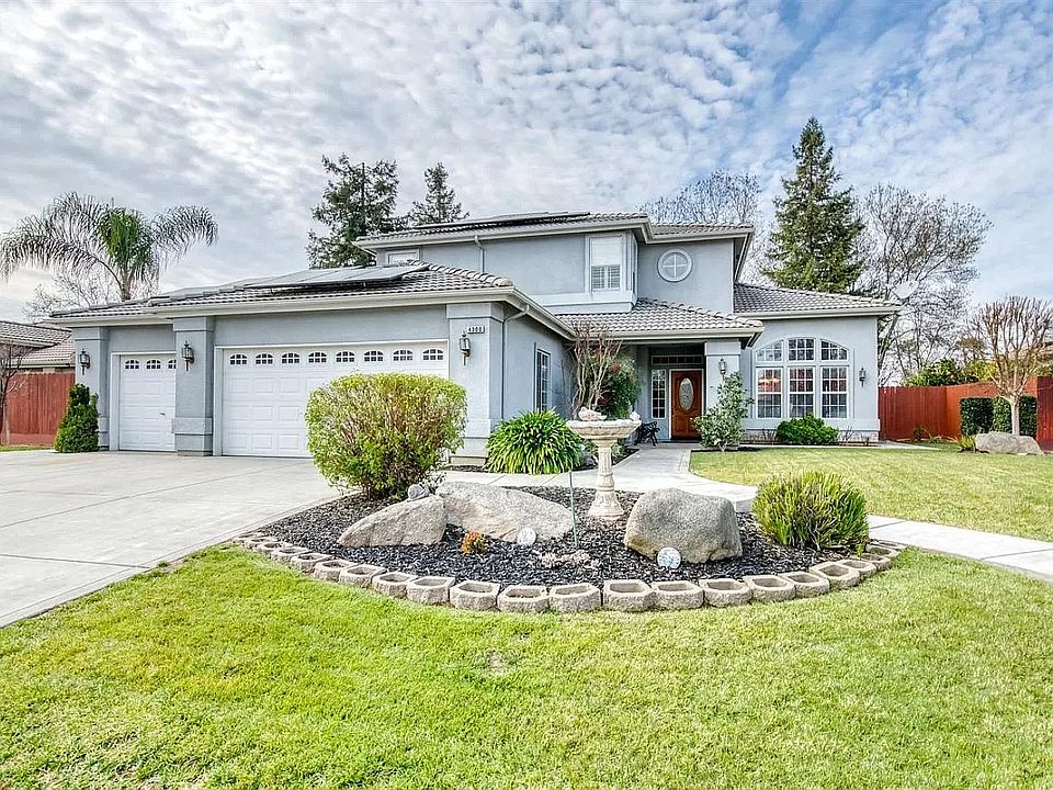 Welcome to 4300 Black Hawk St, a stunning 4-bedroom, 3-bathroom home situated on the 8th hole of the Pheasant Run Golf Course in Chowchilla. Upon entering, you're greeted by high ceilings, a grand staircase, and a formal living room to your right. The spacious formal dining room is located just off the kitchen, perfect for entertaining. The kitchen features ample cabinet space, generous countertops, a breakfast nook, and a bar that opens to the den. The cozy den includes a beautiful built-in cabinet next to the upgraded fireplace. The first floor also offers a bedroom, a bathroom, and an oversized laundry room for added convenience.