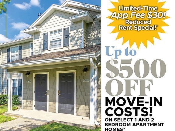 - Special offer! Up to $500 OFF Move-In Costs on Select 1 and 2 Bedroom Apartment Homes* For a Limited Time, App Fee is only $30! *Must apply and be approved by 10/31/25. Income restrictions apply, contact leasing office for details.