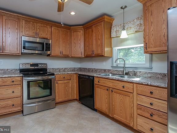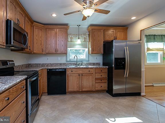 Great 5 bedroom, 3 full bath rambler with hardwoods on main level (uncovered and in nice condition). Approximately two (2) acres with a pond! Large enclosed all season porch with breezeway to huge 3 car gar w/upper level perfect for storage & workshop. Remodeled upstairs baths & kitchen with Stainless Steel appliances. Finished basement with rec room with a brick fireplace/pellet stove insert. There is a built in wet bar with plenty of table space and comfy seating area. There is storage space and laundry as well as another two bedrooms. The rear yard is partially fenced by a privacy fenced area complete with brick patio & fruit bushes & fig tree. Go out of the fenced area --- that's part of this property also --- all the way to the wonderful pond. The bridge invitingly leads to the pond or your personal serenity! Lots of living & playing space. Come see this beauty close to shopping & commuter routes, Solar panels convey! This is the one!!!