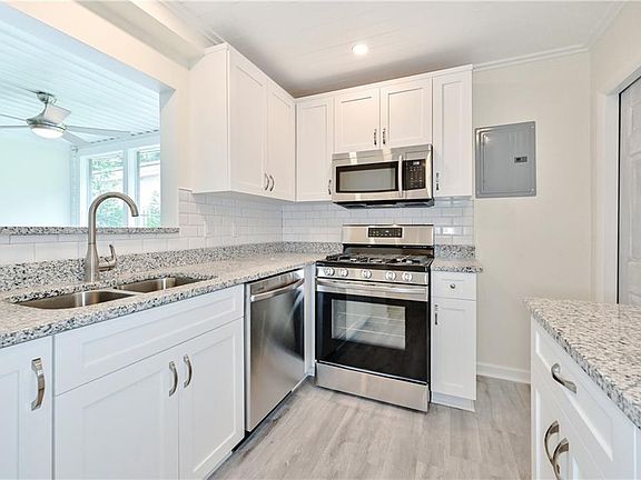 - Kitchen Features: Stone Counters, Breakfast Room, Solid Surface Counters, Cabinets White