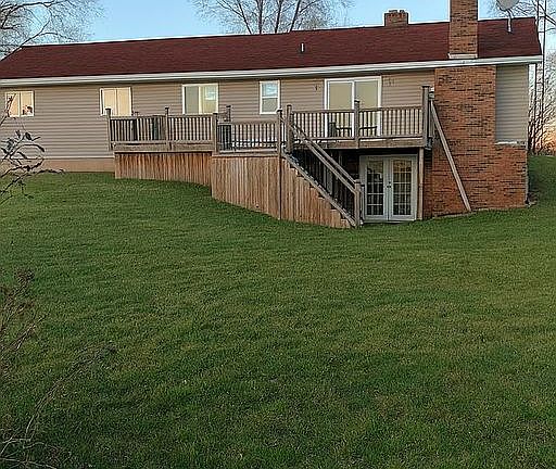 Ranch 4 Bedroom, Single Family home on 5 acres; 1500 SF upstairs and 570 SF finished in basement. Partially-finished Walkout Basement with the 3 rooms that could be easily converted to bedrooms with window egress kits that are approx 2.5k ea. If these basement rooms were converted to bedrooms it would make it a 7 bedroom. Full Bathroom on main floor, and construction of 1/2 bath in basement is underway. Rear Wood Deck, Vinyl siding, one car 300 SF attached garage, New laminate floors throughout, New Windows, New Doors, New Bathroom, New Kitchen, Propane Gas Furnace with alternative heat with Outdoor Wood Boiler, Concrete Driveway, Brand new wood front porch and two fireplaces.